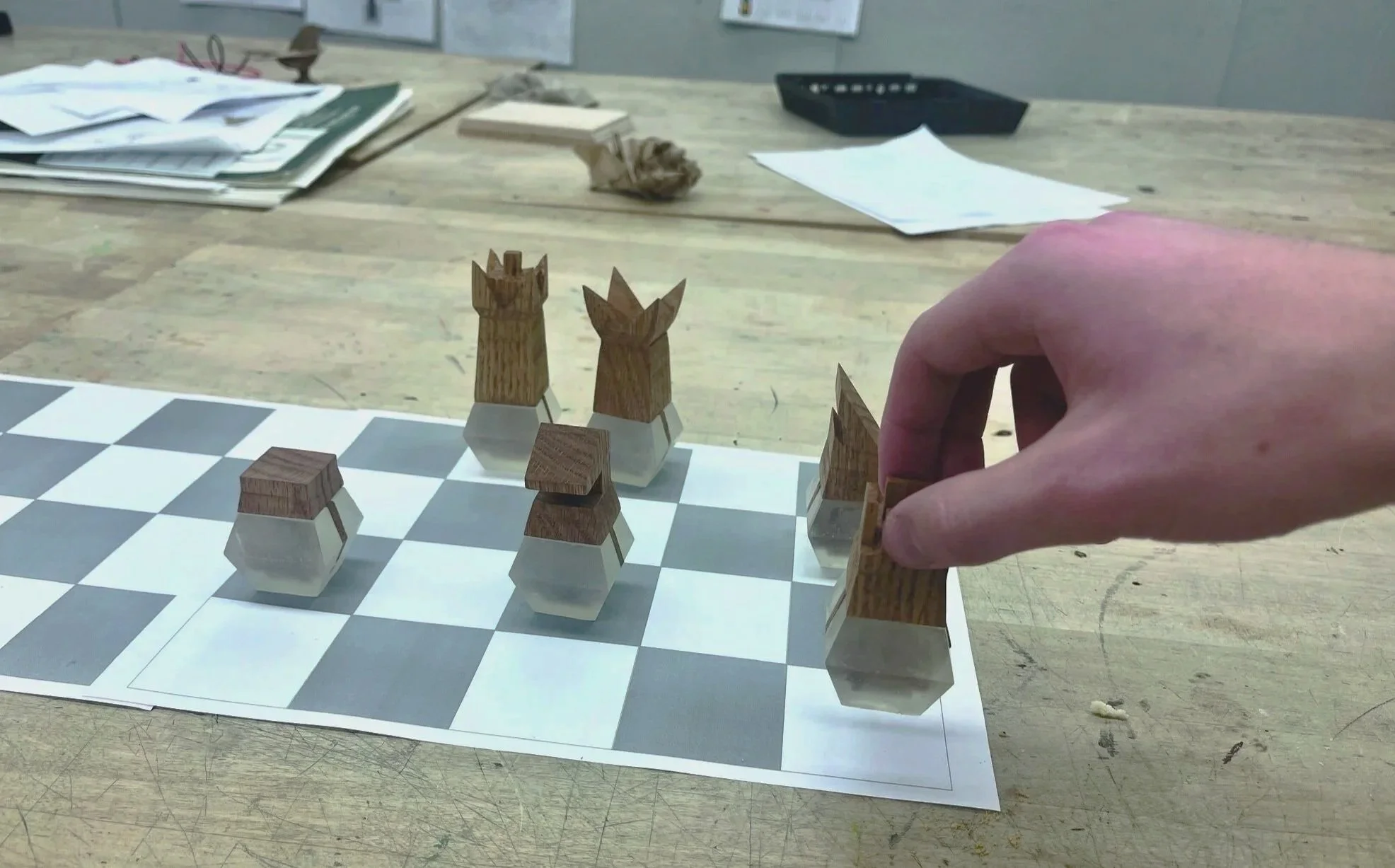 My chess set took great inspiration from the Bauhaus design style.